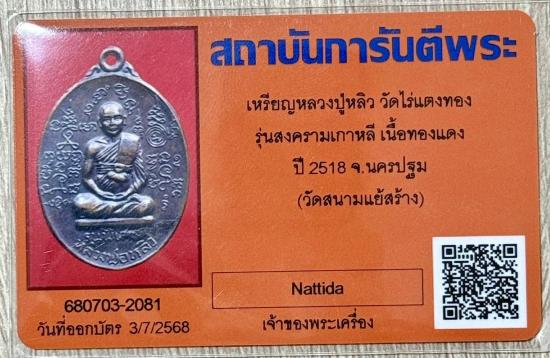 เหรียญหลวงปู่หลิว วัดไร่แตงทอง รุ่นสงครามเกาหลี เนื้อทองแดง ปี 2518 จ.นครปฐม..เหรียญดี ปีลึกค่ะ