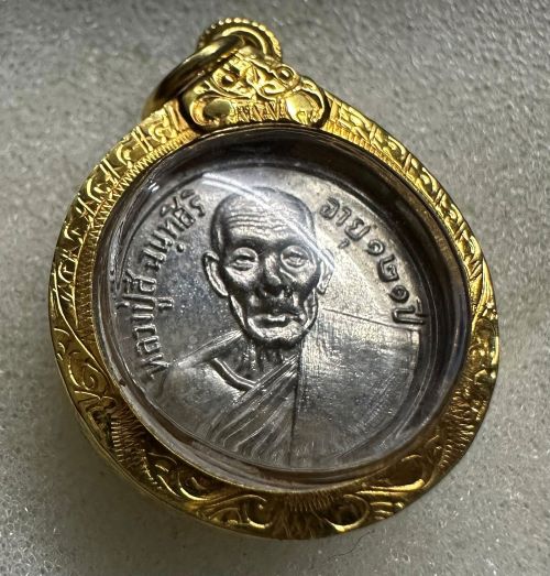 เหรียญรุ่นแรก หลวงปู่สี เลี่ยมทองหนาๆ