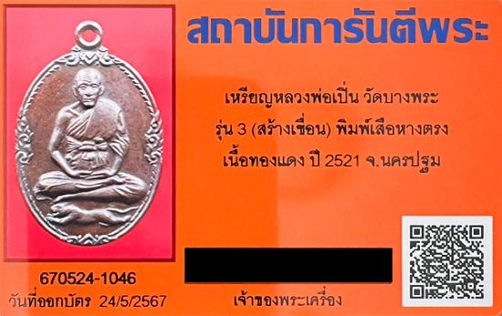 เหรียญหลวงพ่อเปิ่น วัดบางพระ รุ่น3 เสือหางตรง สวยๆจมูกโด่ง สายเหนี่ยวที่โด่งดัง เนื้อทองแดง ปี 2521 จ.นครปฐม เลี่ยมทองใหม่