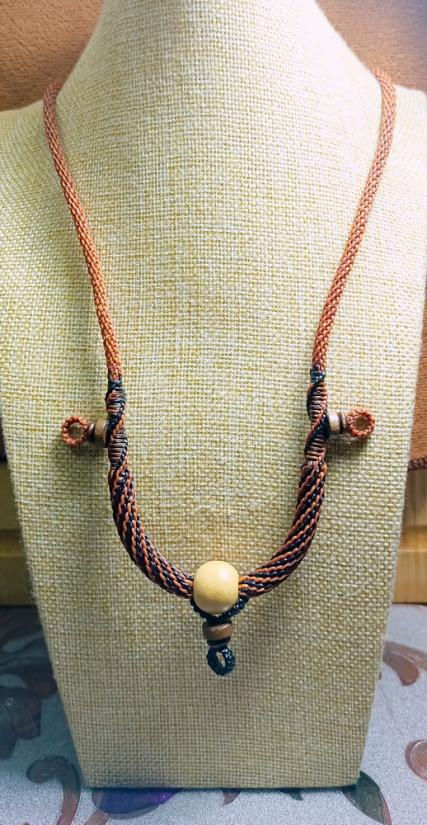 สร้อยคอเชือกเทียน งานถักมือ ( สีน้ำตาล-แซมดำ + แซมลูกปัดไม้ธรรมชาติ ห้อยพระ 3 องค์ ) ยาว24นิ้ว ครับ |
