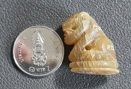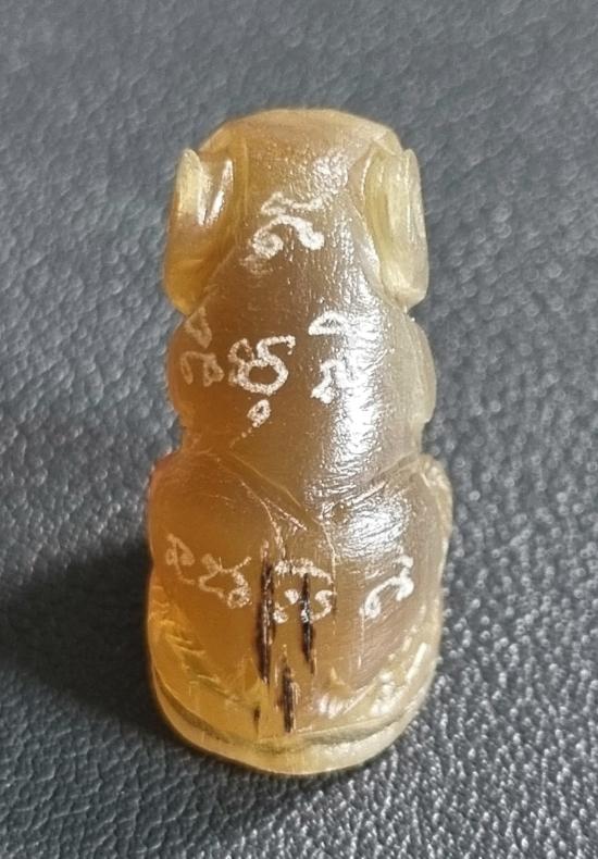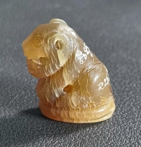 เสือ แกะเขาควายเผือก ฐานอุดผง และมีเส้นเกศาโผล่ออกมาชัดเจน (สีน้ำผึ้ง นิยม) หลวงพ่อสิน วัดละหารใหญ่ จารย์มือรอบตัว (สภาพใหม่ เก่าเก็บ ไม่เคยผ่านการใช้งาน)