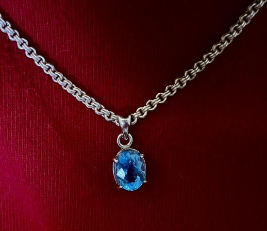 จี้เงินรูปไข่ ประดับพลอยโทแพช สีฟ้า Blue Topaz ขนาด 8x6 mm