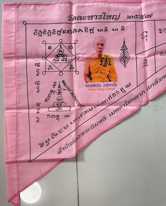 ผ้ายันต์ ธงพระฉิมพลี เมตตาโชคลาภ แคล้วคลาดโชคดี หลวงพ่อสิน วัดละหารใหญ่ จ.ระยอง (ขนาด 18 x ยาว 26 นิ้ว) ปั๊มตราวัด หายาก ยุคเก่า สภาพสวยเดิมๆเก่าเก็บ ไม่ผ่านการใช้งาน