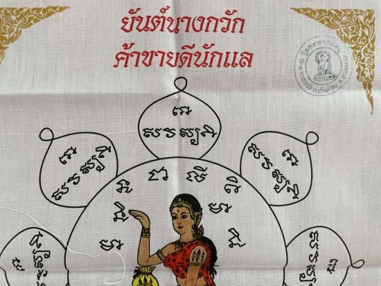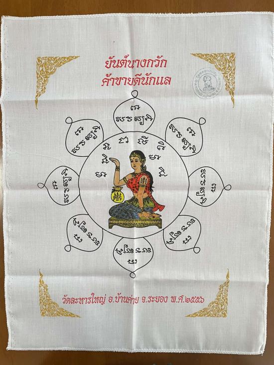 ผ้ายันต์นางกวัก ค้าขายดีนักแล ปีเก่า 2556 มีปั๊มยันต์ ตราวัด หลวงพ่อสิน วัดละหารใหญ่ จ.ระยอง (ขนาดประมาณ 18.5 x 14.5 นิ้ว) สภาพสวยเดิม เก่าเก็บ ไม่ผ่านการใช้งาน