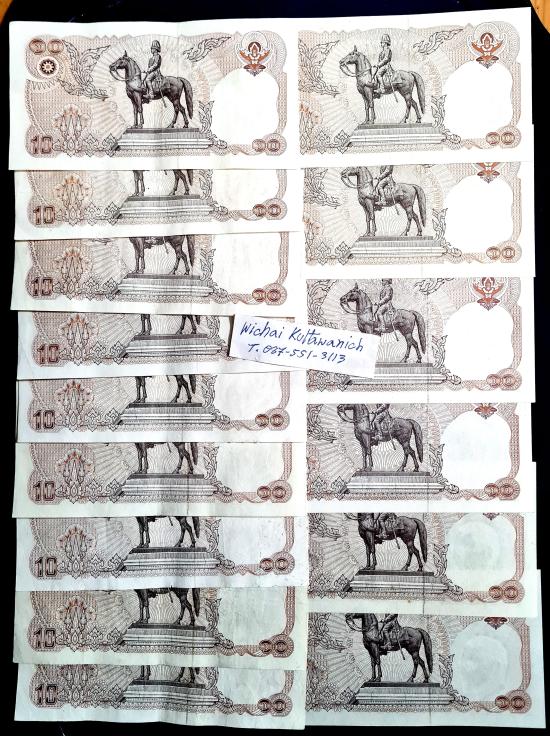 ธนบัตร ร 9 แบบ 12 ชนิดราคา 10 บาท ผ่านใช้+ไม่ผ่านใช้รวม 15 ใบ ราคาเบาหวิว |