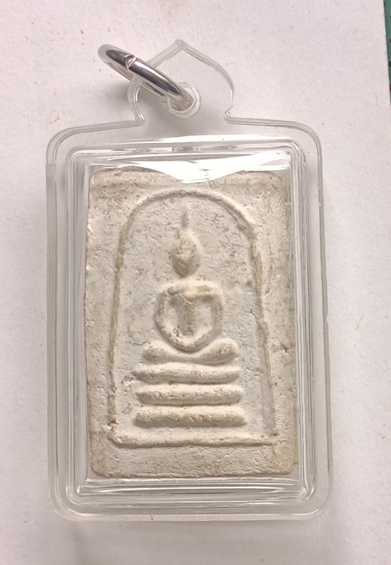 พระสมเด็จมงคลมหาลาภ วัดสัมพันธวงศ์ พิมพ์เล็ก หลังเรียบ เนื้อผง ปี 2499 คุณแม่บุญเรือน อธิษฐานจิต พร้อมเลี่ยม พร้อมบัตรรับรอง |