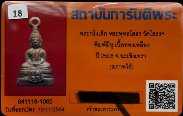 พระกริ่งเล็ก พระพทุธโสธร พิมพ์มีหู เนื้อทองเหลือง