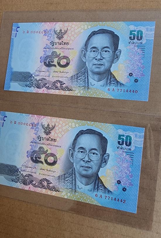วัดใจ…ให้จริง ธนบัตร ๕๐ บาท แบบ 16 จำนวน 2 ใบ สภาพใหม่ไม่ผ่านการใช้งานมาพร้อมพลาสติกใสครับ