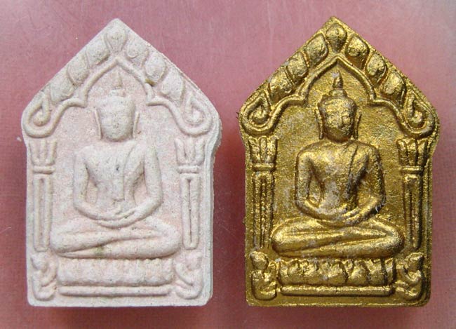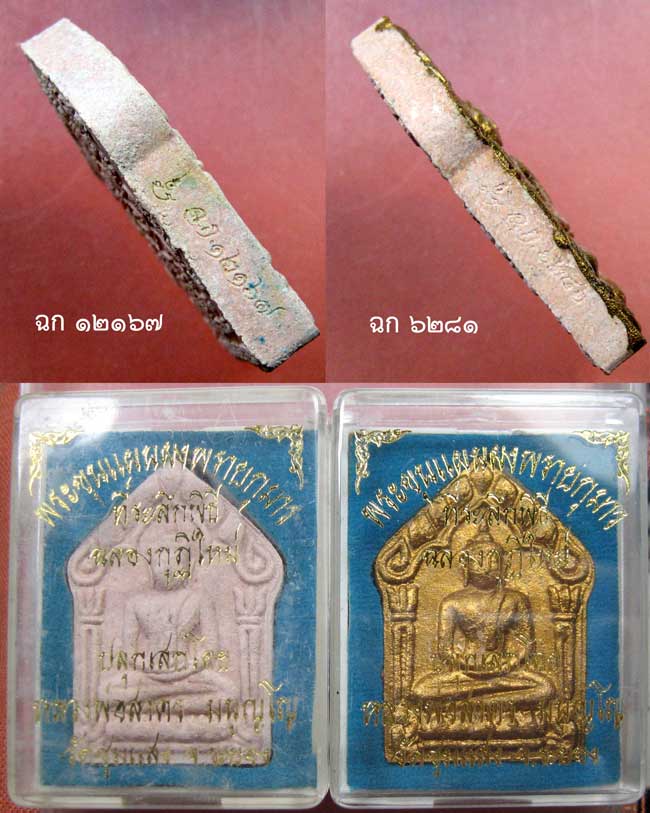 พระขุนแผนผงพรายกุมาร ที่ระลึกพิธีฉลองกุฎิ เนื้อชมพู ปี ๒๕๕๓ ไม่ทาทอง หมายเลข ๑๒๑๖๗ และทาทอง หมายเลข ๖๒๘๑ พร้อมกล่องเดิมๆ