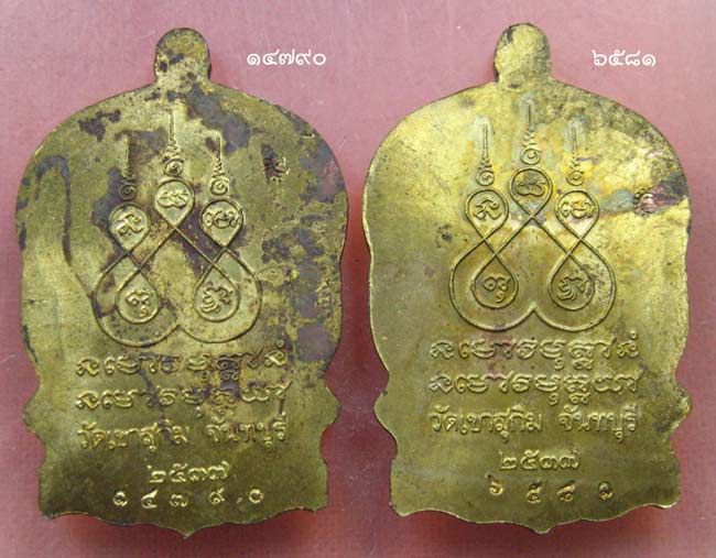 เหรียญนั่งพาน เนื้อทองเหลือง หลวงพ่อสมชาย วัดเขาสุกิม ตอกโค้ด ส และโค้ด จำนวน 2 เหรียญ หมายเลข ๑๔๗๙๐ และ ๖๕๘๑ ได้มาจากคนในพื้นที่