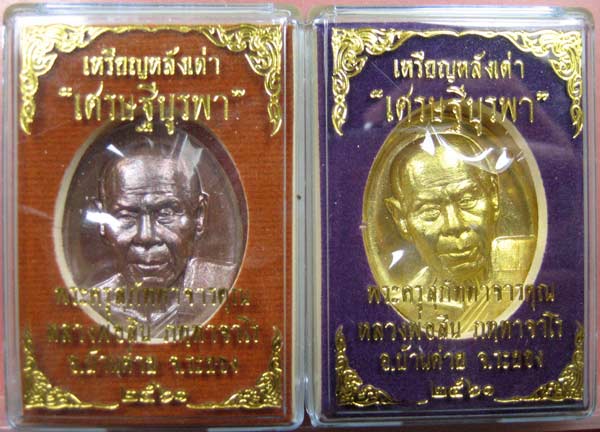 เหรียญหลังเต่า รุ่น เศรษฐีบูรพา เนื้อทองระฆัง หมายเลข ๔๘๖ และทองแดงผิวไฟ หมายเลข ๙๑๒ พร้อมกล่องเดิมๆ