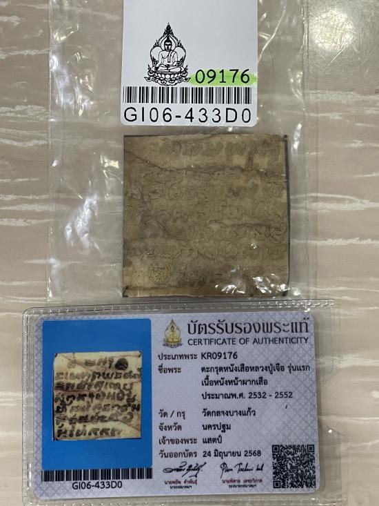 (เคาะแดง2900) +บัตรสมาคม หนังหน้าผากเสือ หลวงปู่เจือ รุ่นแรก