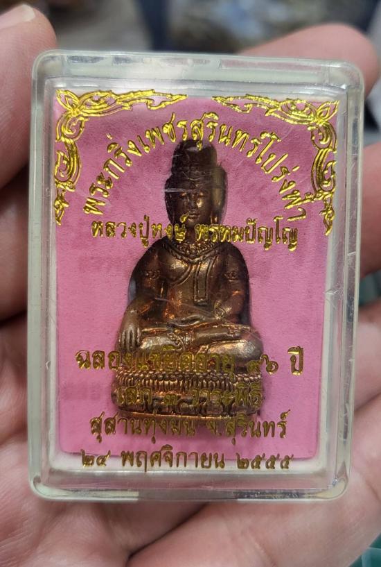 พระกริ่งเพชรสุรินทร์โปร่งฟ้า เนื้อสำริดโบราณ เสก 3 วาระ หลวงปู่หงษ์ สุสานทุ่งมน สุรินทร์ ปี 2555 เลข ๑๗๙๘ กล่องเดิม |