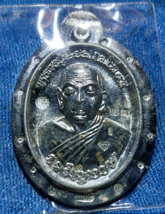 รายละเอียด เหรียญเจริญพรเมตตามหานิยม หลวงปู่นิยม กมโล เนื้อเงินไม่ตัดปีก หลังยันต์ ๙รอบ กรรมการ no23 วัดแจ้งนอก ปี 2555