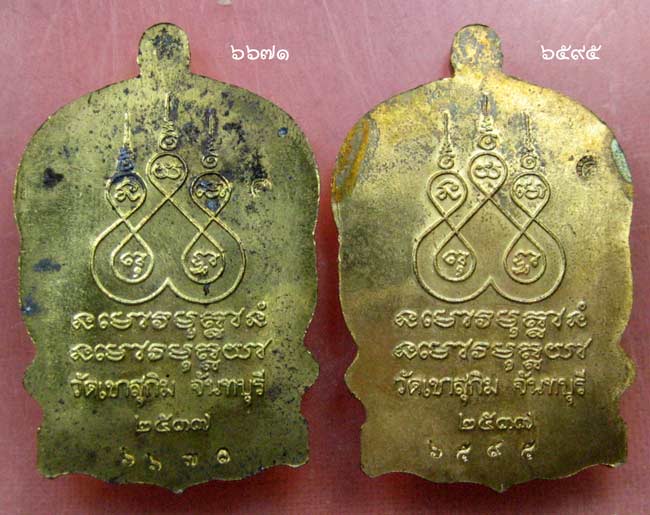 เหรียญนั่งพาน เนื้อทองเหลือง หลวงพ่อสมชาย วัดเขาสุกิม ตอกโค้ด ส ละโค้ด จำนวน 2 เหรียญ หมายเลข ๖๖๗๑ และ ๖๕๙๕ ได้มาจากคนในพื้นที่