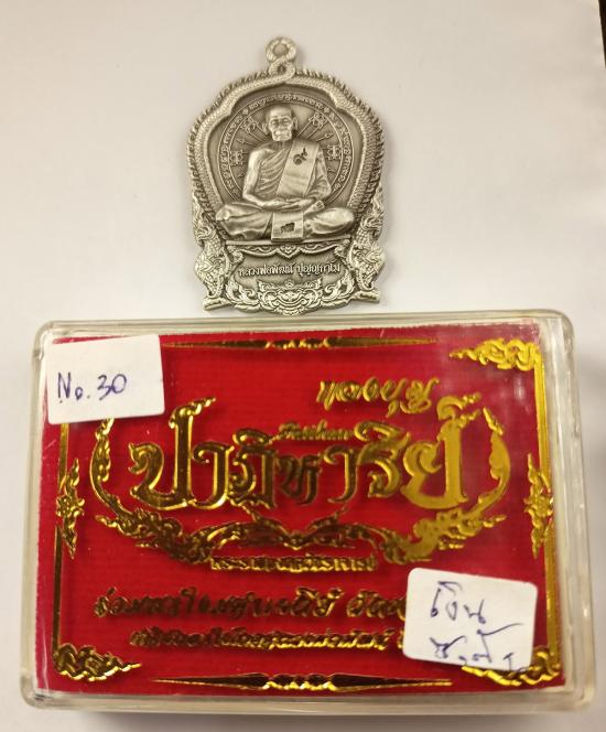 เหรียญ รุ่นปาฏิหาริย์ EOD หลวงพ่อพัฒน์ วัดห้วยด้วน "พิมพ์นั่งพาน" เนื้อเงินซาติน เบอร์ 30 พร้อมกล่องครับ (เหรียญหนัก 15.45 กรัม)