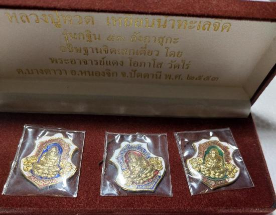 เหรียญกะไหล่ทองลงยาตอกโค๊ตเลข97ชัด3องค์