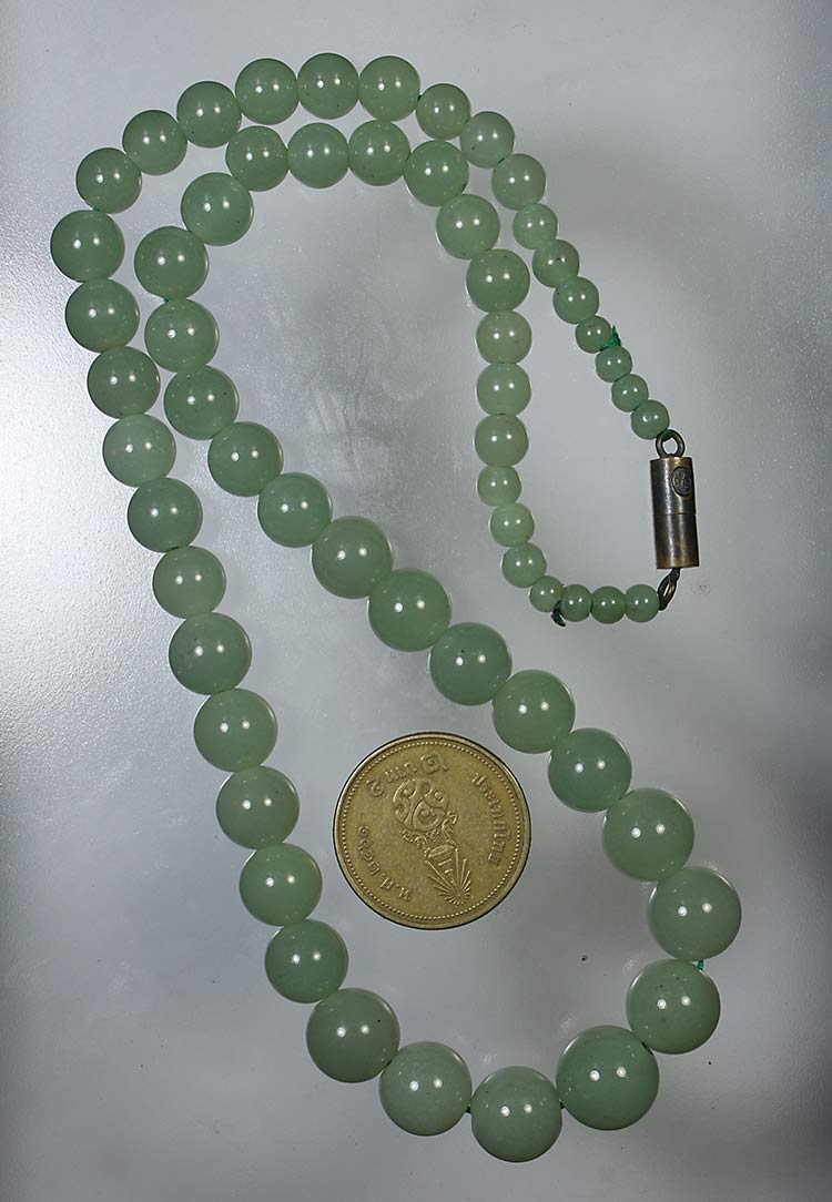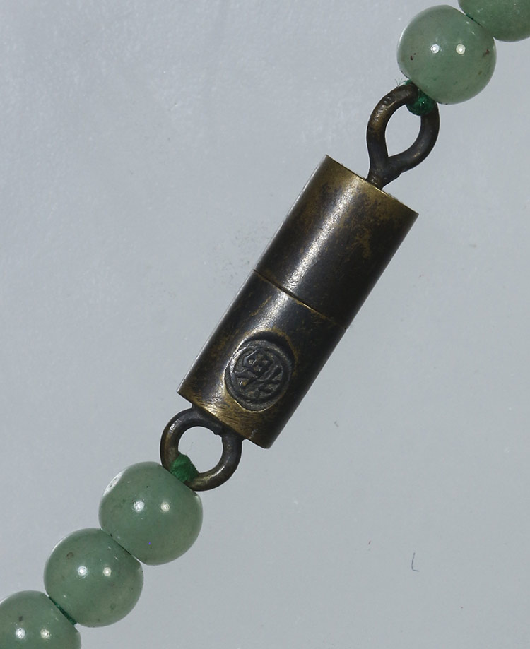 วัดใจ**เครื่องราง สร้อยหินหยกแกะ ตอกภาษาจีนที่ข้อต่อ.....ตามสภาพครับ |