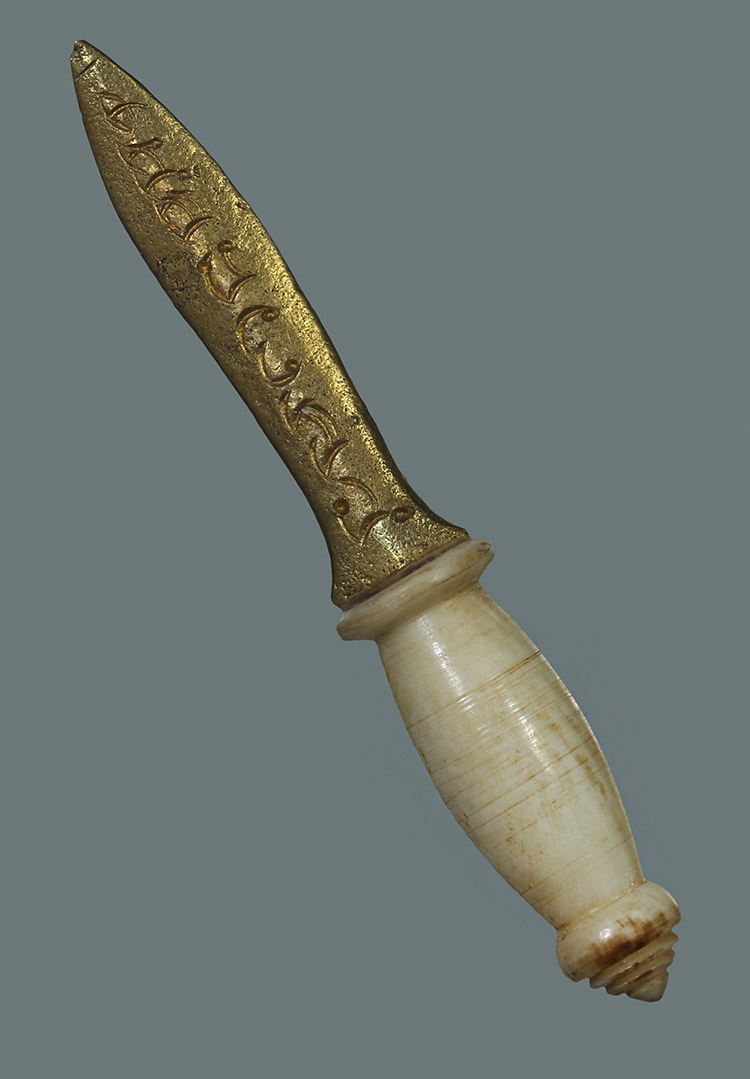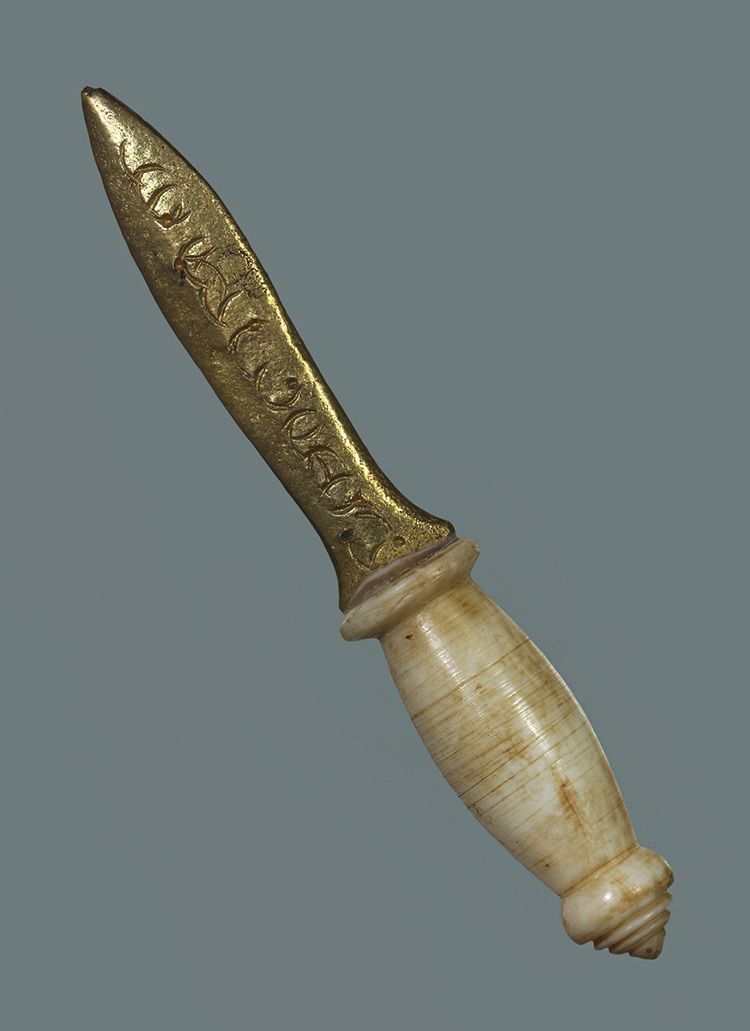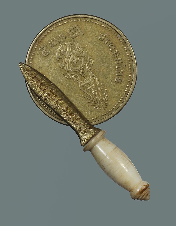 วัดใจ**เครื่องราง พระขรรค์สาริกา ใบเนื้อทองเหลือง+ด้ามงาแกะ สวย....เดิมๆครับ