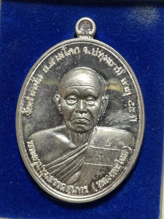เหรียญมงคลจักรวาล หลวงปู่โฉม เตชวโร วัดตำหนัก อ.สามโคก จ.ปทุมธานี ไตรมาส 54 เนื้อเงิน สวยเดิมๆพร้อมกล่องคับ
