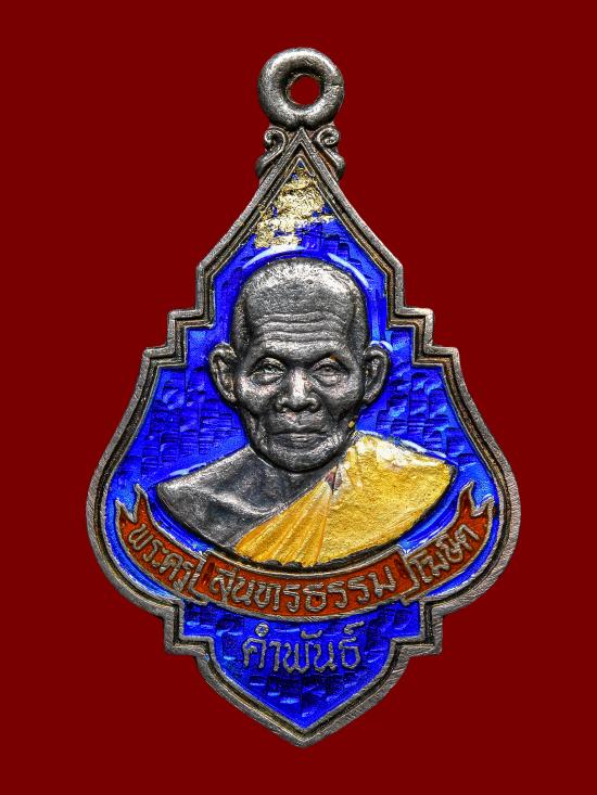 เหรียญพุ่มข้าวบิณฑ์หลวงปู่คำพันธ์ โฆสปัญโญ วัดธาตุมหาชัย #เนื้อเงินลงยาน้ำเงิน สวยเดิมๆ หมายเลข 73