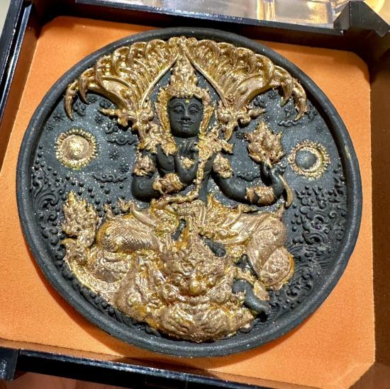 วัดใจ!! จตุคามรามเทพ อภิปัญญามหาเศรษฐี รูปแบบอาจารย์เฉลิมชัย โฆษิตพิพัฒน์ เนื้อผงสีดำปัดทอง ชุดกรรมการ ขนาด 5.5 ซม |