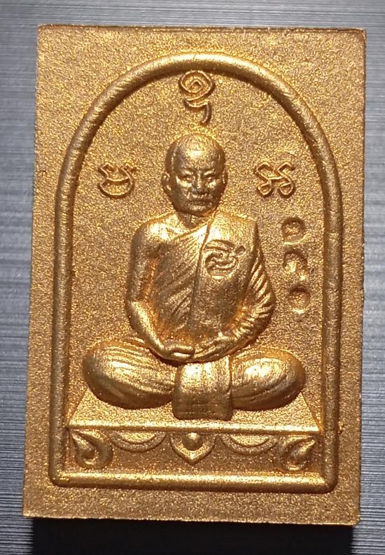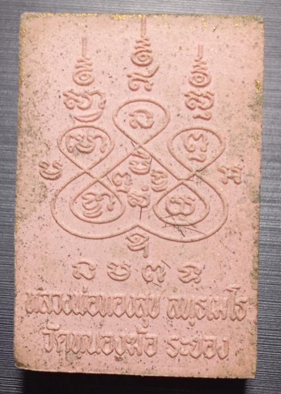 พระผงรูปเหมือน หลวงพ่อทองสุข ลทฺธเมโธ วัดหนองฆ้อ จังหวัดระยอง เนื้อชมพูทาทอง หมายเลข 105 ด้านหลังโรยเกศาหลวงพ่อไม่มีกล่องนะครับ |