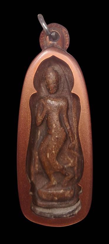 ชื่อพระเครื่อง พระลีลาหย่อง เนื้อผงน้ำมัน เลี่ยมเก่า