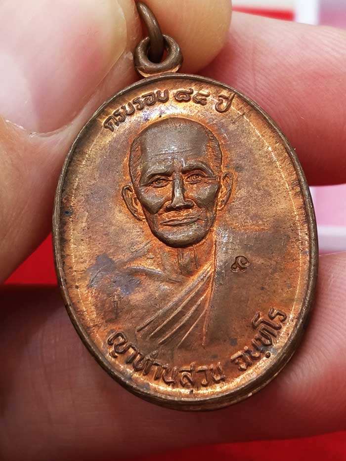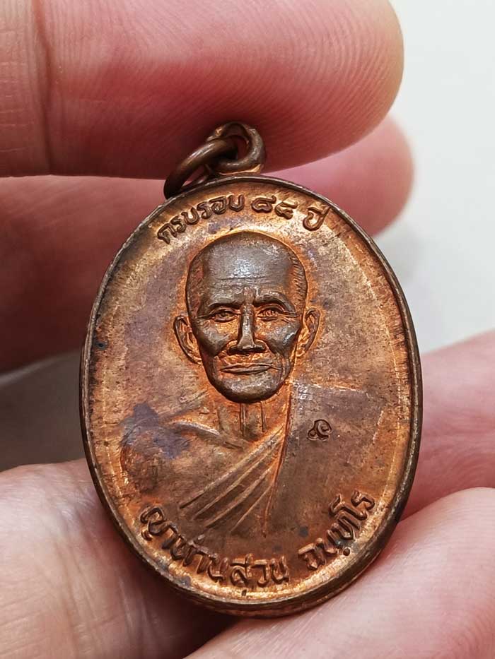 เหรียญเทพยินดี หลวงปู่ญาท่านสวน วัดนาอุดม จ.อุบลราชธานี บล็อกสายฝน ผิวไฟแดง ๆ ครับ |