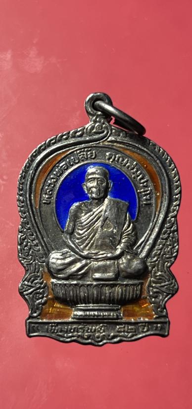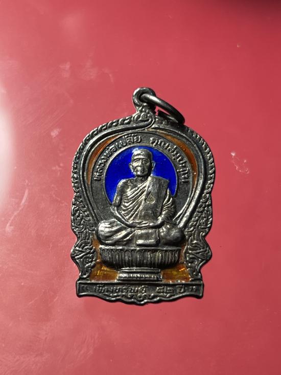 เหรียญนั่งพานเนื้อเงินลงยา หลวงพ่อเปลี้ย วัดชอนสารเดช ตำนานปืนแตก