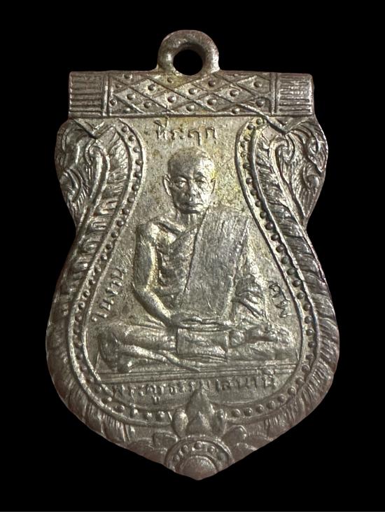 เหรียญเสมาหลวงพ่อแดง พระครูธรรม เสนานี กะไหล่ทองปี2472 ขอบเลื่อย |