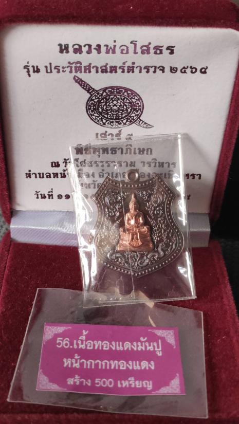 เหรียญหลวงพ่อโสธร รุ่นประวัติศาสตร์ตำรวจ 2568 พิธีเสาร์๕ วัดโสธรวราราม จ.ฉะเชิงเทรา เนื้อทองแดงมันปู หน้ากากทองแดง หลังโล่ทองแดง หมายเลข ๓๔๘ พร้อมกล่องกำมะหยี่ เหรียญสวยมากครับ