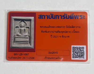 พระสมเด็จแหวกม่านหลวงพ่อกวย ปี 2521 เนื้อผง พิมพ์ต้อ วัดโฆสิตาราม จ.ชัยนาท ออกบัตรแล้วเรียบร้อย(1)