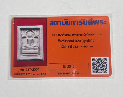 พระสมเด็จแหวกม่านหลวงพ่อกวย ปี 2521 เนื้อผง พิมพ์ต้อ วัดโฆสิตาราม จ.ชัยนาท ออกบัตรแล้วเรียบร้อย(2)