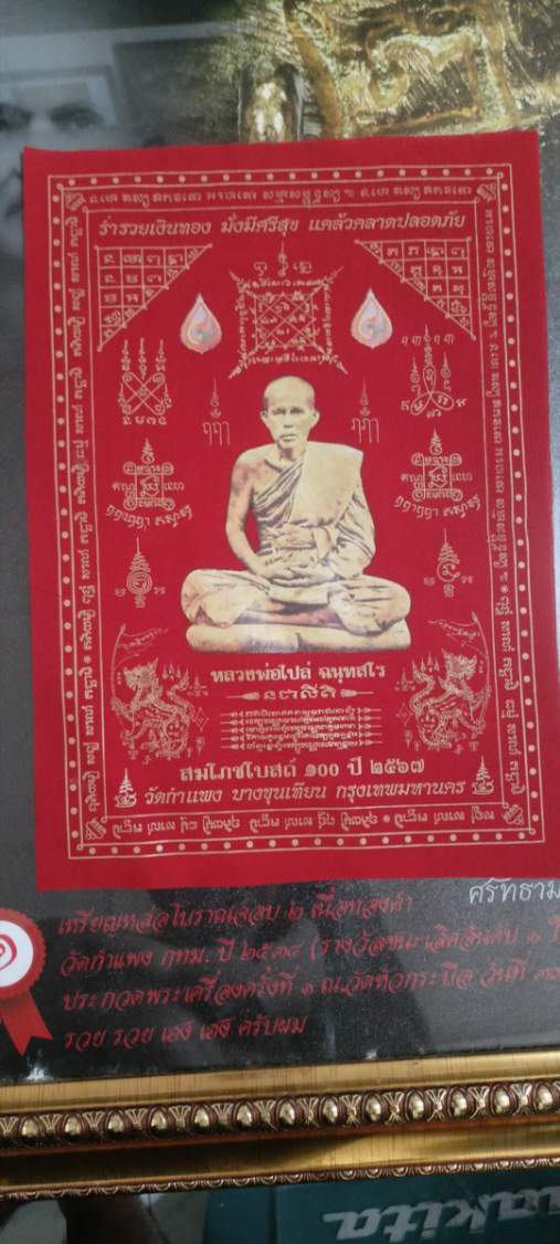 ผ้ายันต์หลวงพ่อไปล่ ฉนฺทสโร รุ่นสมโภชโบสถ์ 100 ปี พ.ศ. 2567 วัดกำแพง รับ 4 ผืน