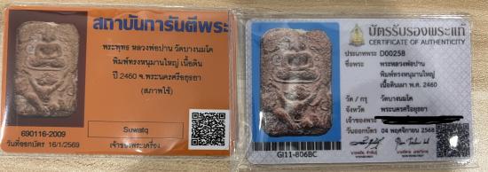 หลวงพ่อปาน พิมพ์ทรงหนุมานใหญ่ทรงเครื่อง ผงอุดอยู่ครบ +พร้อมบัตรจี และ สมาคม