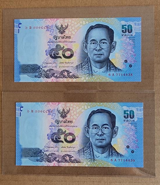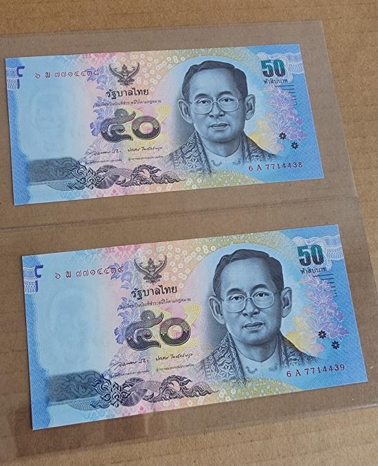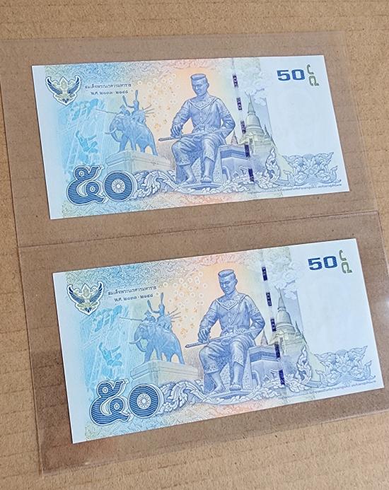 วัดใจ ให้จริง ธนบัตร ๕๐ บาท แบบ 16 (เลขเรียงติดกัน) จำนวน 2 ใบ สภาพใหม่ไม่ผ่านการใช้งานมาพร้อมพลาสติกใสครับ