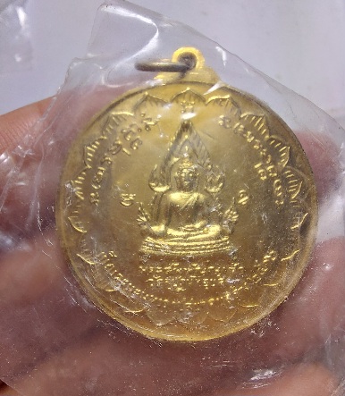 ด้านหลังเป็นพระรูปของ พระสัพพัญญูเจ้า พระประธานในพระอุโบสถวัดสุปัฏนารามวรวิหาร ซึ่งเป็นพระพุทธรูปที่ศักดิ์สิทธิ์ยิ่งองค์หนึ่งในจังหวัดอุบลฯ มีอักขระขอมติดองค์พระว่า อะ อุ มะ อะ คือ อะระหัง แปลว่า ผู้ไกลจากกิเลสซึ่งหมายถึงพระพุทธเจ้า อุ คือ อุตตมะธัมโม หมายถึง พระสัจธรรมอันเลิศเมื่อพระพุทธองค์ตรัสออกมาแล้วย่อมเป็นหนึ่งไม่มีสอง และ มะ คือ มหาสังโฆ แปลว่า พระสงฆ์หมู่ใหญ่ |