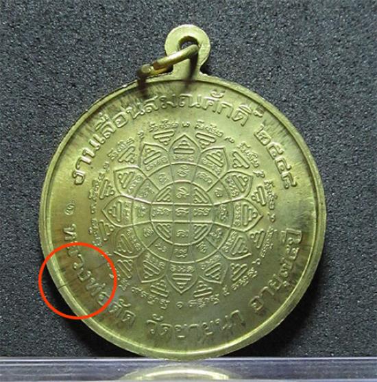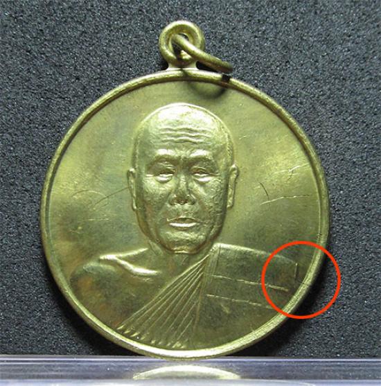 เหรียญเลื่อนสมณศักดิ์ หลวงพ่อตัด เนื้อทองฝาบาตร จารมือ ปี 2548 ถือว่าเป็นเหรียญยอดนิยมรองจากเหรียญรุ่นแรกของหลวงพ่อตัด การสร้างก็ถือว่าเป็นรุ่นที่พิถีพิถันมากที่สุดรุ่นหนึ่ง คือมีการนำเอาชนวนต่างๆมากมายไปหลอมและรีดออกมาเป็นแผ่นก่อนที่จะนำไปปั๊มเป็นเหรียญ ส่วนของเนื้อฝาบาตรเองจะมีบางชุดที่ได้นำชนวนทองแดงพิเศษใส่เพิ่มเข้าไปในเบ้าหลอมเนื้อฝาบาตรเพียงไม่กี่เบ้า ซึ่งสามารถพบเจอเหรียญที่มีจุดแดงๆ หรือเป็นสีแดงเด่นชัดทั่วทั้งเหรียญ ซึ่งเหรียญเนื้อฝาบาตรชุดที่มีชนวนทองแดงนี้จะมีค่านิยมสูงกว่าเหรียญฝาบาตรธรรมดา ด้านหลังบรรจุยันต์มงกุฎพระพุทธเจ้า ถือว่าเป็นยันต์ใหญ่ที่หลวงพ่อตัดท่านเองก็ชอบมากๆ ประสบการณ์จะเน้นไปทางคำคูณหนุนดวงชะตา เลื่อนขั้นเลื่อนยศ เลื่อนตำแหน่ง ปกป้องคุ้มครองทั้งจากสิ่งที่มองเห็นและมองไม่เห็นครับ เหรียญนี้มีรอยร้าวจากการปั๊มเหรียญนะครับ |