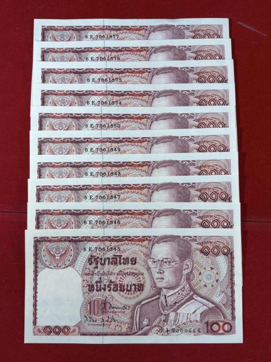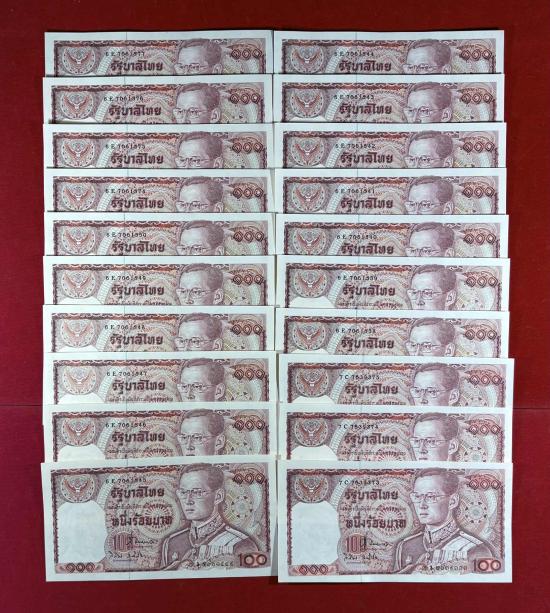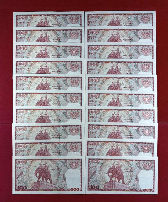 ธนบัตร 100บาท รัชการที่9 แบบที่ 12 หลังสมเด็จพระนเรศวรมหาราชทรงช้างศึก หลังช้างแดง จำนวน 20 ใบ สภาพสวยตามรูป