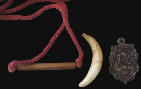 พร้อมกันทีเดียว 3 รายการครับ ตะกรุดล้านนา แบบคาดเอว + เขี้ยวหมู + กะลาแกะเก่า
