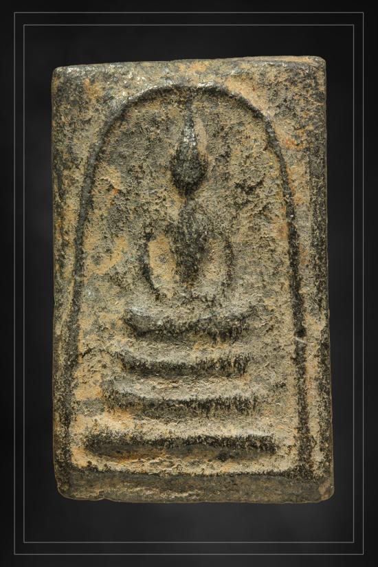 เอกลักษณ์: เนื้อพระจะมีความแห้ง แกร่ง แต่ดูนุ่มตา (เก่าตามธรรมชาติอายุ 100 กว่าปี) หากส่องดูจะเห็นมวลสารจุดขาวหรือเกล็ดผงพุทธคุณกระจายอยู่