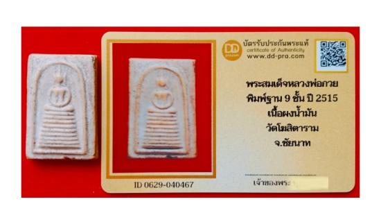 ลพ.กวย ฐาน 9 ชั้น ผงน้ำมันเข้มข้น ปี 2515 สวย เดิม สบายตา + บัตรรับรอง