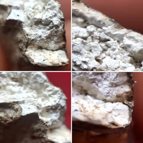 วัดใจ ชิ้นส่วนมวลสารสมเด็จบางขุนพรหม ภายในกรุเจดีย์ เนื้อขาวคลุมด้วยคราบกรุ คราบทราย