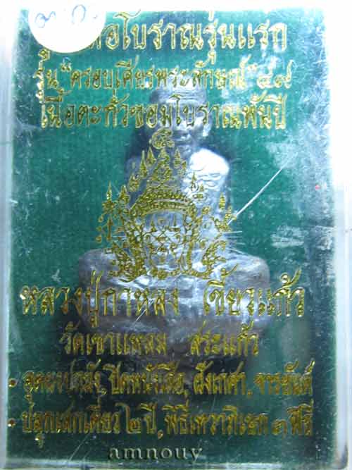 รูปหล่อหลวงปู่กาหลงเขี้ยวแก้ว วัดเขาแหลม จ.สระแก้ว รุ่นแรก สร้างปี 2549 เนื้อตะกั่ว ติดเกศา อุดหนังเสือ จารด้านหน้าและหลัง ตอกโค้ด หมายเลข 1,000 พร้อมกล่องเดิมจากวัดครับ