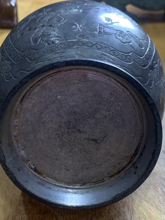 โถโบราณ แกะสลัก เนื้อโลหะ คล้ายๆเนื้อเงิน ขนาด กว้าง 4 นิ้ว สูง 5.5 นิ้ว สวยๆ ไม่ทราบที่ ใครรู้จัดไปครับ |