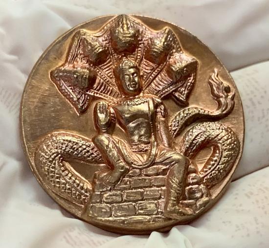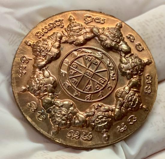 ...ด้านหลังเป็น ดวงตราพญาราหู รายล้อมด้วย ๑๒ นักษัตร อันเป็นดวงตราศักดิ์สิทธิ์ของชาวศรีวิชัยทะเลใต้ ประทับลัคนา "มหาจักร" อันเป็นลัคนาที่จะส่งผลให้ผู้ที่ถือครองบูชาพบกับความเจริญรุ่งเรืองตลอดไป