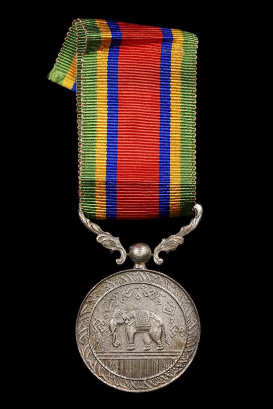 เหรียญเครื่องราชอิสริยาภรณ์ เหรียญช้างเผือกหลังพระมหาพิชัยมงกุฎ เนื้อเงิน กองกษาปณ์ พร้อมแพรแถบ ไม่มีกล่อง