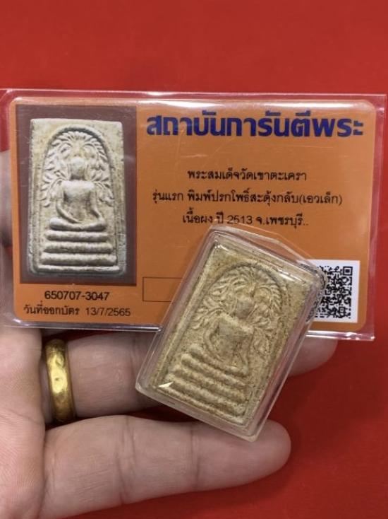 ชื่อพระเครื่อง พระสมเด็จวัดเขาตะเครา รุ่นแรก พิมพ์ปรกโพธิ์สะดุ้งกลับ เอวเล็ก ปี 2513 เพชรบุรี