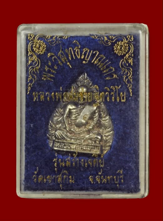 เหรียญหล่อเนื้อเงิน หลวงพ่อสมชาย วัดเขาสุกิม รุ่นสร้างเจดีย์ กล่องเดิม หายาก